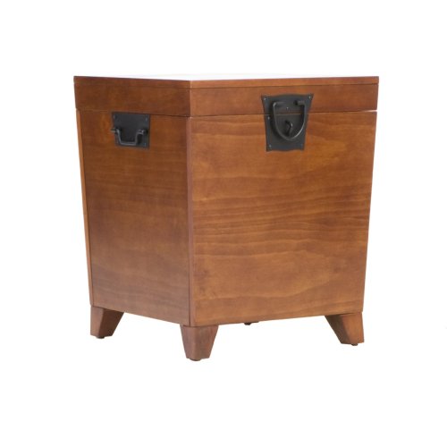- End table with trunk-style storage; 20 by 20 by 23-3/4 inches