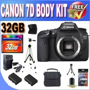 Canon EOS 7D 18 MP CMOS Digital SLR Camera with 3-Inch LCD (Body Only) + 32GB CF Memory + 2 Extended Life Batteries + Ac/Dc Rapid Charger + Deluxe Case w/Strap + Full Size Tripod + USB Card Reader + Memory Card Wallet + LCD Screen Protectors + Accessory Saver Bundle !! Details :